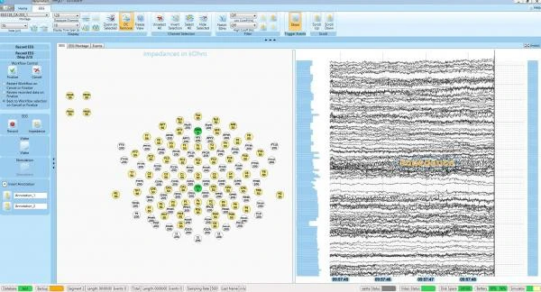 Seja como for, o eletroencefalograma é uma das técnicas de imagem mais rápidas disponível, já que muitas vezes tem uma alta taxa de amostragem, os sistemas costumam exibir digitalmente os dados como um fluxo contínuo de voltagens em uma tela.