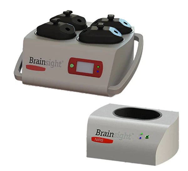O NIRS da Brainsight, da ROGUE utiliza fontes de laser com dois ou mais comprimentos de onda e detectores de alta sensibilidade para medições profundas do cérebro. Além disso, o sistema beneficia de detectores suplementares para medir os sinais superficiais (por exemplo, do couro cabeludo), que assim, são removidos dos dados durante a análise. Os locais de todas as fontes e detectores podem ser planejados com antecedência usando o gerenciador intuitivo da Brainsight e digitalizados usando seus recursos de neuronavegação, permite que as mudanças nos pontos de oxigenação do sangue mapeados nas reconstruções 3D do cérebro do indivíduo (ou em um cérebro médio, se sujeito a ressonância magnética específica não está disponível). Algumas das principais características do sistema Brainsight NIRS são: - Design exclusivo e de baixo perfil de optode e tampa para otimizar o uso em múltiplas modalidades, incluindo:NIRS e TMSNIRS & tESNIRS e EEGNIRS e MEGNIRS e MRI, - Amostragem de alta frequência de NIRS a 100Hz. - 8 canais analógicos para gravar simultaneamente estímulos e bio-sinais (pulso, respiração, etc.) ou sincronizar com outros dispositivos (TTL). - Detectores exclusivos de atividade exclusiva do couro cabeludo colocado próximo a cada fonte ajudam a remover o sinal espalhado do couro cabeludo e do tecido muscular. - Design modular e flexível com uma interface de software intuitiva, para permitir a personalização de configurações de gravação usando: > 8 a 48 fontes de laser, > 8 a 32 detectores corticais de alta sensibilidade, > 4 a 12 detectores de couro cabeludo proximal de baixa sensibilidade."