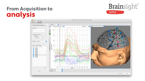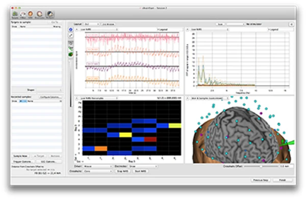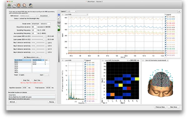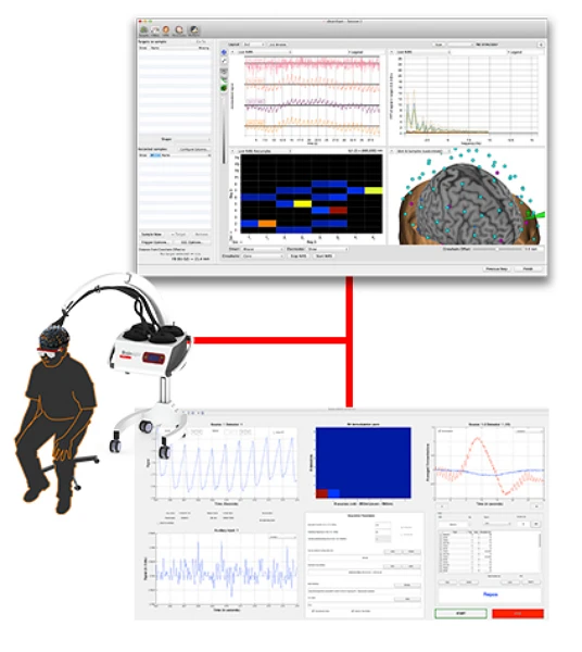 A saber, o nível de coleta de dados visual de um equipamento nirs compreende desde a farmacologia, à função e estrutura do cérebro. Isso é possível graças à capacidade do equipamento nirs em detectar com exatidão alterações da hemoglobina do sangue em função da atividade cerebral. Essa característica permite ao sistema do equipamento nirs uma reprodução visual detalhada da anatomia do cérebro, com sobreposições e coordenadas em alta resolução para fNIRS, TMS-NIRS, TES-NIR, EEG-NIR, MEG-NIRS e MRI-NIRS Imagem cerebral funcional NIRS é importante atuar com um sistema de neuronavegação para planejar e digitalizar a localização do optode na ressonância magnética do sujeito a ser examinado, para uma melhor precisão espacial, e também uma Integração multi-modalidade com TMS, tES, EEG, MEG e / ou fMRI..